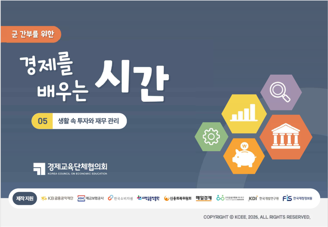 간부용 05. 생활 속 투자와 재무 관리 페이지 정보 작성자 최고관리자 댓글 댓글 0건 조회Hit 9회 작성일Date 26-04-08 13:18 본문 교안이 필요하신 분은 경교협 메일(kcee1115@daum.net)로 별도 요청주십시오. 페이스북 공유 트위터 공유 목록 이전글06. 위험을 줄이는 신용과 대출 관리 26.04.08 다음글04. AI와 디지털 전환 시대 26.04.08 댓글 0 댓글목록 등록된 댓글이 없습니다.